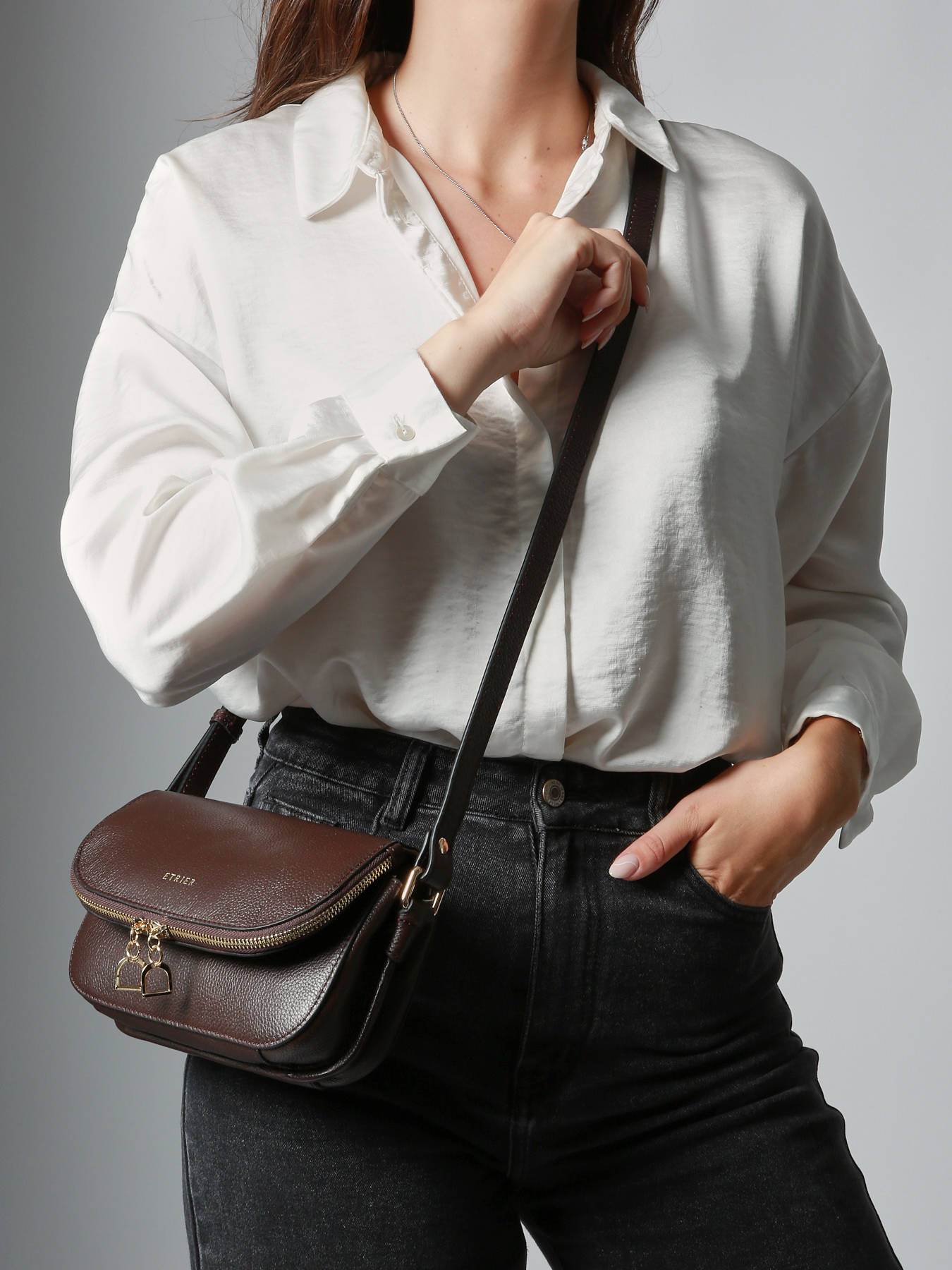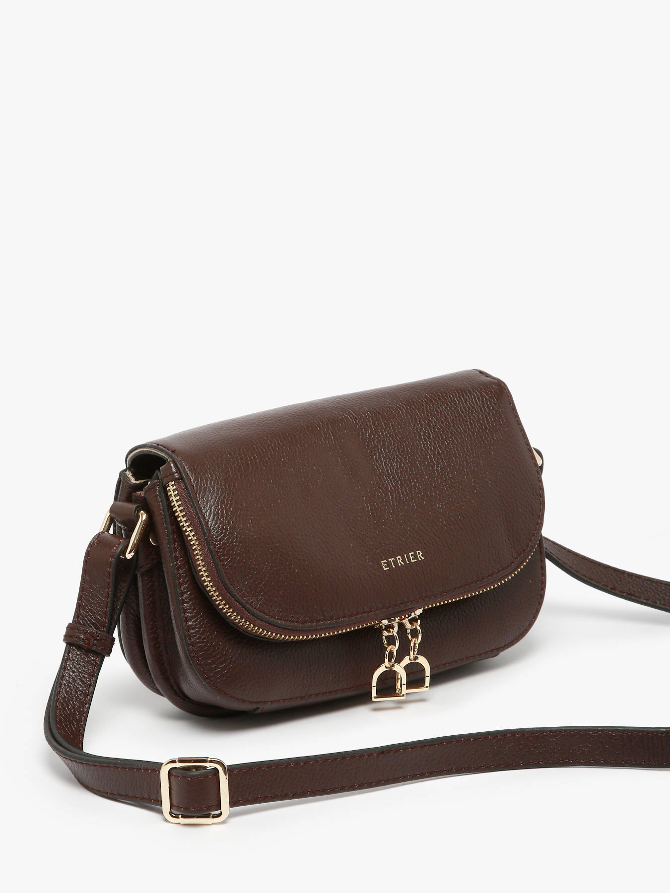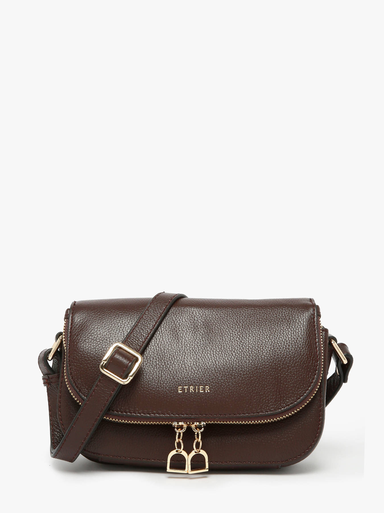 De Tradition collectie van Etrier krijgt dit seizoen een nieuwe look. Deze charmante crossbody tas kreeg een meer hedendaagse uitstraling, zonder de sierstiksels van voorheen. Het resultaat? Een light design, waarin de uitzonderlijke kwaliteit van het soepele leder in de spotlight komt te staan. De light gold hardware, zoals de ritssluiting en het Etrier-logo, bezorgen de tas een vrouwelijke en exclusieve touch. En laat je vooral verleiden door de charmante Etrier-ritshangertjes, in de vorm van stijgbeugels. Deze zijn een knipoog naar het logo van het merk, en dansen vrolijk mee op het ritme van je stappen. Dit meest compacte formaat biedt tal van handige opbergvakken, om jouw essentiële spulletjes veilig én overzichtelijk in op te bergen. De lederen schouderriem van deze Tradition damestas is verstelbaar, en kan gekruist of lang over de schouder gedragen worden.
