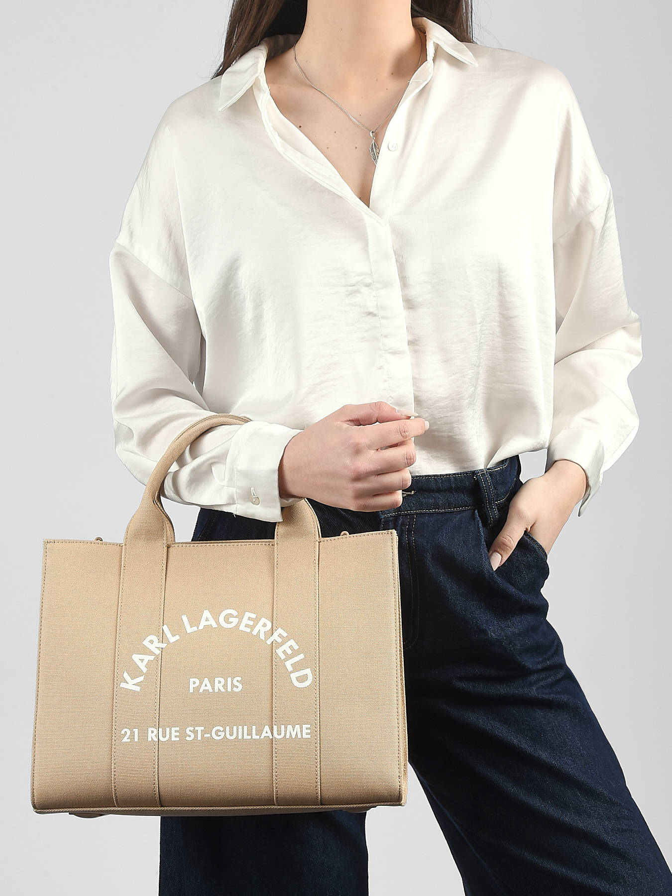 De KARL LAGERFELD handtas van katoen is een elegant en veelzijdig model. Het heeft een modern ontwerp met een rits voor extra veiligheid. De verstelbare en afneembare schouderriem biedt de mogelijkheid om de tas in de hand of over de schouder te dragen, en past zich zo aan je behoeften en stijl aan. Binnenin heeft de tas twee eenvoudige zakken en een ruime hoofdcompartiment om je essentials te organiseren. Deze tas is het perfecte accessoire voor dagelijks gebruik, dat praktisch nut en verfijning combineert, terwijl het tegelijkertijd de onderscheidende wereld van het merk KARL LAGERFELD benadrukt.