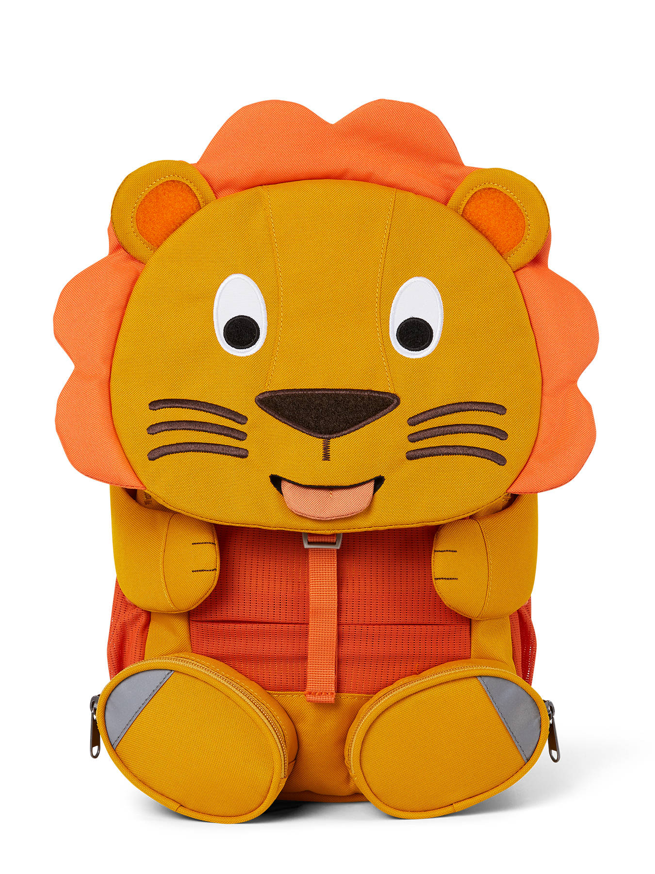 Maak kennis met dit toffe rugzakje van het Duitse merk Affenzahn, de nieuwe beste vriend van uw kleuter! De rugzak is gemaakt uit stevig en waterafstotend materiaal, en heeft tal van voordelen! De pootjes van het diertje hebben een velctro patch, die aan de neus, ogen en oortjes kunnen bevestigd worden. Laten we verstoppertje spelen! Ook de tong is uitrekbaar, en onthult een handig naamlabel. Het hoofdcompartiment van dit rugzakje sluit met rits, en kan makkelijk een schriftje of lunchbox bevatten. Vooraan en aan weerszijden zijn extra vakjes uit mesh voorzien, om kleine spulletjes in te stoppen. Ook de pootjes onthullen twee kleine ritsvakjes! De verstelbare schouderbandjes en rugzijde zijn gewatteerd, voor optimaal draagcomfort. De rugzak is ook voorzien van reflectoren, zodat uw kleuter zich veilig in het verkeer kan begeven. Ook perfect als lunchtas!