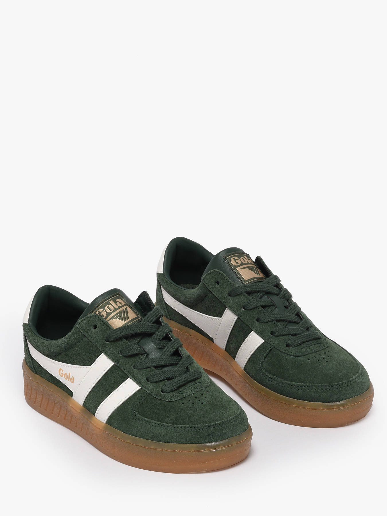 De GRANDSLAM SUEDE sneaker van GOLA herwerkt een klassieker in courtschoenenstijl met een trendy en vrouwelijke touch. Deze roze/off-white versie valt op door de roze suède bovenkant, gecombineerd met een zijlogo van Gola en een off-white hielstuk, allemaal geplaatst op een retro gumzool. Dit iconische model, geïnspireerd door het sportieve erfgoed van het merk, belichaamt perfect de balans tussen vintage stijl en modern comfort. Ideaal voor dagelijks gebruik, past het gemakkelijk bij casual en eigentijdse outfits. Een must-have voor iedereen die traditie en moderniteit elegant wil combineren.
